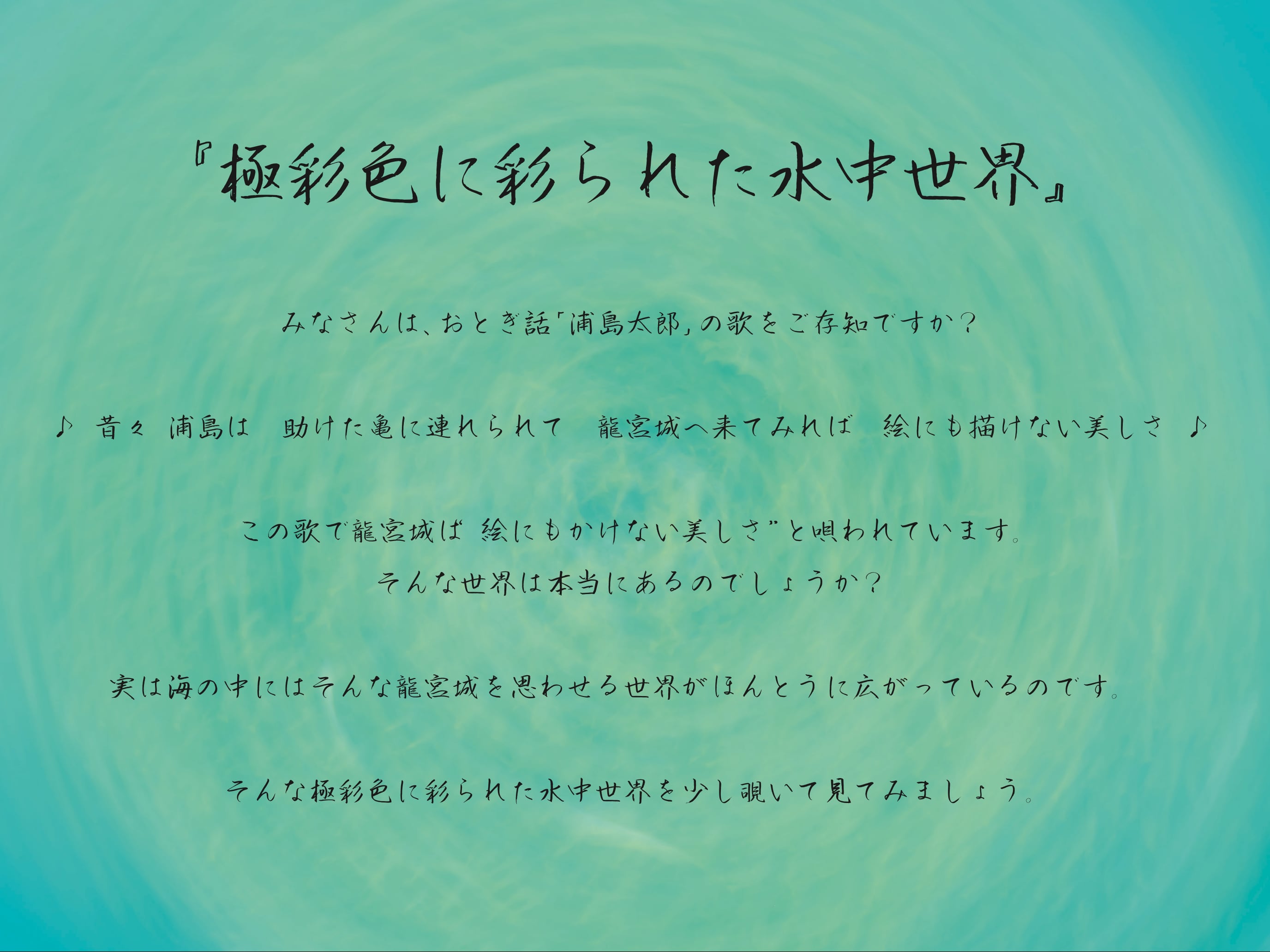 実は海の中にはそんな龍宮城を思わせる世界がほんとうに広がっているのです。